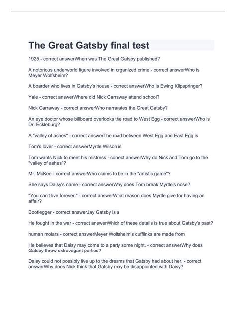 Read Online Great Gatsby 100 Question Test Answers Reader